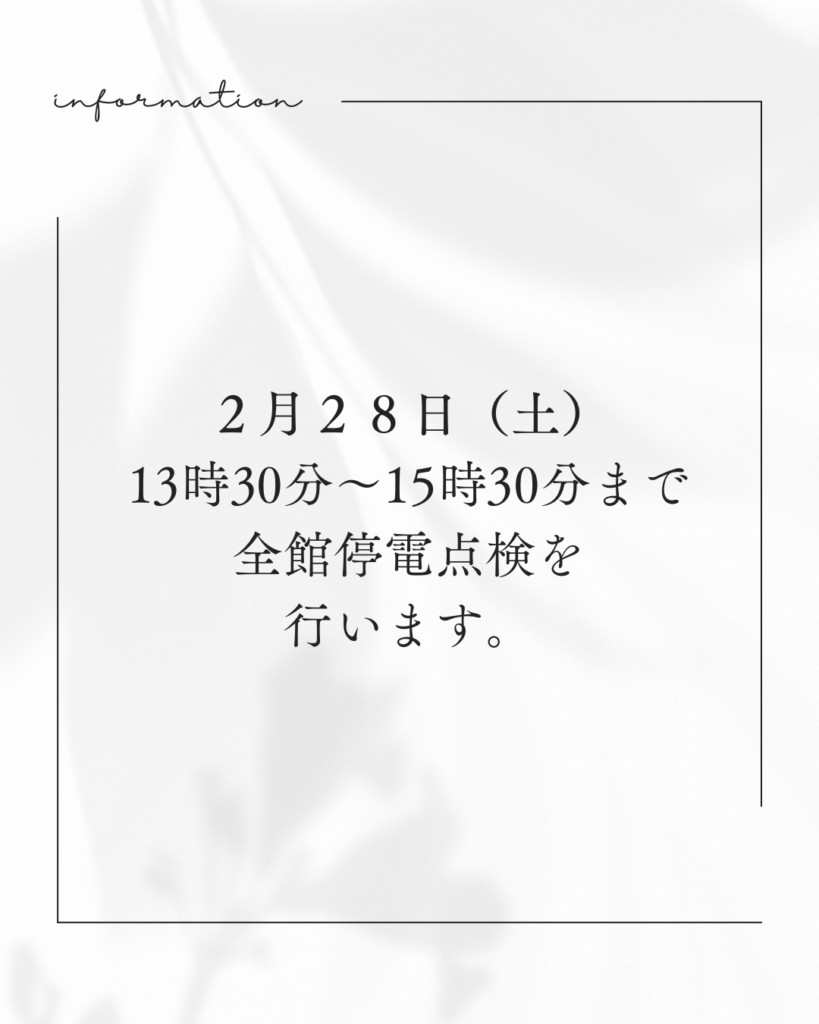 2月28日(土)13時30分〜15時30分に、院内全館停電検査を行います。