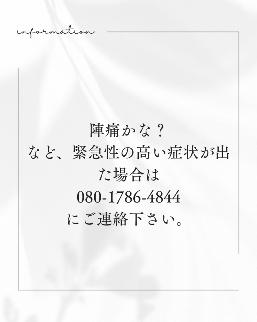 陣痛等の症状の問い合わせについて、緊急の電話窓口を設置しましたのでご案内致します。