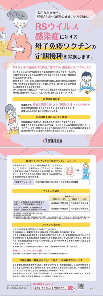 4月1日より、妊婦さんを対象にした公費によるRSウイルスワクチンが始まりました。